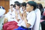 และร่วมกันยืนสงบนิ่ง แสดงความอาลัยเป็นเวลา 93 วินาที จากนั้น อธิการบดี ประธานในพิธี จุดธูปเทียนบูชาพระรัตนตรัยหน้าโต๊ะหมู่บูชา จุดเครื่องบูชาทองน้อย และกราบถวายสักการะพระฉายาลักษณ์ พระสงฆ์ จำนวน 10 รูป เจริญพระพุทธมนต์ถวายเป็นพระราชกุศล และประธานในพิธีทอดผ้าบังสุกุล พร้อมกรวดน้ำอุทิศถวายแด่สมเด็จพระนางเจ้าสิริกิติ์ พระบรมราชินีนาถ พระบรมราชชนนีพันปีหลวง