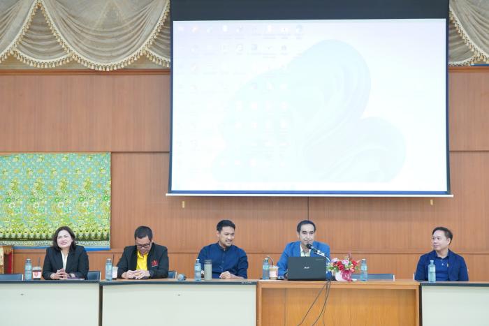 วันที่ 8 ตุลาคม 2568 มหาวิทยาลัยราชภัฏสงขลา นำโดย ผศ.พิเชษฐ์ จันทวี อธิการบดี พร้อมด้วย คณะผู้บริหาร จัดประชุมบุคลากรสำนักงานอธิการบดี เพื่อชี้แจงนโยบายและทิศทางการปฏิบัติงาน พร้อมเปิดโอกาสให้บุคลากรสังกัดสำนักงานอธิการบดี แสดงความคิดเห็น และปัญหา อุปสรรคในประเด็นต่างๆ ในการปฏิบัติ เพื่อหาแนวหาพัฒนากระบวนการปฏิบัติงานให้มีประสิทธิภาพเพิ่มขึ้น ณ ห้องประชุมชั้น 4 อาคารศูนย์ภาษาและคอมพิวเตอร์ มรภ.สงขลา