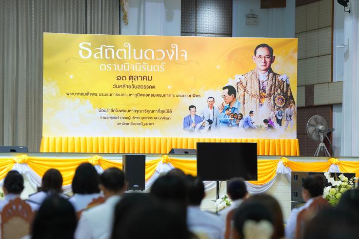 มหาวิทยาลัยราชภัฏสงขลา (มรภ.สงขลา) จัดกิจกรรมน้อมรำลึกในพระมหากรุณาธิคุณ เนื่องในวันคล้ายวันสวรรคตพระบาทสมเด็จพระบรมชนกาธิเบศร มหาภูมิพลอดุลยเดชมหาราช บรมนาถบพิตร 13 ตุลาคม 2568 ระหว่างวันที่ 7-9 ตุลาคม 2568 โดยมีการจัดกิจกรรมต่าง ๆ ได้แก่ กิจกรรมราชภัฏจิตอาสาบริจาคโลหิตเพื่อถวายเป็นพระราชกุศล ณ อาคารศูนย์รวมกิจการนักศึกษา กิจกรรมสวดพระพุทธมนต์เพื่อถวายเป็นพระราชกุศล พิธีตักบาตรพระสงฆ์จำนวน 10 รูป และพิธีถวายราชสักการะ ในวันที่ 9 ตุลาคม 2568 ณ หอประชุมเฉลิมพระเกียรติฯ โดยมี ผศ.พิเชษฐ์ จันทวี อธิการบดี มรภ.สงขลา เป็นประธานในพิธี พร้อมด้วยคณะผู้บริหาร คณาจารย์ เจ้าหน้าที่ นักศึกษา มรภ.สงขลา อดีตอาจารย์และประชาชนทั่วไป เข้าร่วมกิจกรรม เพื่อน้อมรำลึกในพระมหากรุณาธิคุณอันหาที่สุดมิได้ ในการนี้ ผศ.พิเชษฐ์ จันทวี ได้กล่าวคำกราบบังคมทูล รำลึกในพระมหากรุณาธิคุณพระบาทสมเด็จพระบรมชนกาธิเบศร มหาภูมิพลอดุลยเดชมหาราช บรมนาถบพิตร ความว่า ตลอดระยะเวลา 70 ปีแห่งการครองสิริราชสมบัติ พระองค์ได้ทรงทุ่มเทพระวรกายและพระสติปัญญา บำเพ็ญพระราชกรณียกิจน้อยใหญ่นานัปการ ด้วยหลักทศพิธราชธรรม และเปี่ยมล้นไปด้วยน้ำพระราชหฤทัย รวมทั้งมีความห่วงใยในชีวิตความเป็นอยู่ของราษฎรเสมอมา โครงการอันเนื่องมาจากพระราชดำริมากกว่า 5,000 โครงการ รวมทั้งปรัชญาเศรษฐกิจพอเพียงที่ได้พระราชทานไว้นั้น ล้วนเป็นรากฐานสำคัญในการพัฒนาประเทศให้มีความเจริญก้าวหน้าอย่างมั่นคงและยั่งยืน ก่อให้เกิดประโยชน์สุขอย่างไพศาลแก่ประเทศชาติและประชาชนตราบจนปัจจุบัน พระเกียรติคุณและพระเมตตาคุณของพระองค์ ประจักษ์แจ้งและประทับอยู่ในดวงใจของปวงชนชาวไทยทุกหมู่เหล่า พระองค์ทรงเป็นมิ่งขวัญและเป็นศูนย์รวมจิตใจของคนในชาติอย่างแท้จริง ในฐานะสถาบันอุดมศึกษาเพื่อการพัฒนาท้องถิ่น ปวงข้าพระพุทธเจ้าได้ยึดมั่นในการนำศาสตร์พระราชา และหลักการ เข้าใจ เข้าถึง พัฒนา มาเป็นแนวทางหลักในการปฏิบัติภารกิจในการพัฒนาท้องถิ่น ให้สมกับที่พระองค์ทรงพระราชทานนาม ?ราชภัฏ? ว่า ?คนของพระราชา? ด้วยสำนึกในพระมหากรุณาธิคุณอันล้นพ้นนี้ ปวงข้าพระพุทธเจ้าทั้งหลายจักขอสืบสานพระราชปณิธานด้วยความจงรักภักดี มุ่งมั่นเจริญรอยตามเบื้องพระยุคลบาท โดยยึดมั่นในคุณธรรม จริยธรรม ปฏิบัติหน้าที่และดำรงตนตามแนวทางพระราชดำริ เพื่อสร้างสรรค์คุณประโยชน์แก่ประเทศชาติและประชาชน ธำรงรักษาไว้ซึ่งชาติ ศาสนา และพระมหากษัตริย์ให้สถิตสถาพรสืบไป