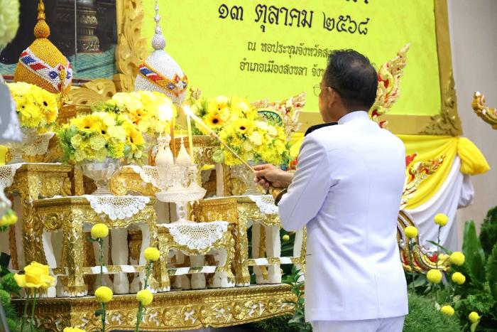 เมื่อวันที่ 13 ตุลาคม 2568 ผศ.พิเชษฐ์ จันทวี อธิการบดีมหาวิทยาลัยราชภัฏสงขลา (มรภ.สงขลา) มอบหมายให้ ผศ.กมลนาวิน อินทนูจิตร รองผู้อำนวยการสำนักศิลปะและวัฒนธรรม พร้อมด้วยบุคลากรของหน่วยงาน เป็นตัวแทนของมหาวิทยาลัยร่วมพิธีวางพวงมาลาเบื้องหน้าพระบรมฉายาลักษณ์ พระบาทสมเด็จพระบรมชนกาธิเบศร มหาภูมิพลอดุลยเดชมหาราช บรมนาถบพิตร เนื่องใน ?วันนวมินทรมหาราช? ประจำปี 2568 จัดโดย จังหวัดสงขลา ณ หอประชุมศาลากลางจังหวัดสงขลา โดยมี นายโชตินรินทร์ เกิดสม ผู้ว่าราชการจังหวัดสงขลา เป็นประธานในพิธี กิจกรรมดังกล่าวจัดขึ้นเพื่อแสดงความจงรักภักดีและน้อมรำลึกในพระมหากรุณาธิคุณอันหาที่สุดมิได้ โดยมีคณะผู้บริหารจังหวัดสงขลา ข้าราชการชั้นผู้ใหญ่ หัวหน้าส่วนราชการ ข้าราชการพลเรือน ตุลาการ ทหาร ตำรวจ องค์กรปกครองส่วนท้องถิ่น ภาคเอกชน และรัฐวิสาหกิจ เข้าร่วมในพิธีอย่างพร้อมเพรียง ด้วยความสำนึกในพระมหากรุณาธิคุณ และความจงรักภักดีต่อพระองค์ท่าน โอกาสนี้ นายโชตินรินทร์ เกิดสม ผู้ว่าราชการจังหวัดสงขลา ได้กล่าวน้อมรำลึกในพระมหากรุณาธิคุณ ใจความตอนหนึ่งว่า ตลอดระยะเวลากว่า 70 ปีแห่งรัชสมัย พระบาทสมเด็จพระบรมชนกาธิเบศร มหาภูมิพลอดุลยเดชมหาราช บรมนาถบพิตร ได้ทรงอุทิศพระวรกายและพระสติปัญญาอย่างไม่รู้เหน็ดเหนื่อย เพื่อประโยชน์สุขแห่งปวงชนชาวไทย พระราชกรณียกิจน้อยใหญ่กว่า 4,700 โครงการ ได้ก่อให้เกิดคุณูปการอย่างมหาศาลต่อประเทศชาติ ทั้งในด้านการพัฒนาแหล่งน้ำ เกษตร การศึกษา การแพทย์ และการอนุรักษ์สิ่งแวดล้อม พระองค์ยังได้พระราชทานปรัชญาเศรษฐกิจพอเพียง เป็นแนวทางในการดำรงชีวิตด้วยความพอประมาณ รอบคอบ และมีภูมิคุ้มกัน ซึ่งเป็นหลักแห่งความยั่งยืนที่ทั่วโลกต่างยอมรับและน้อมนำไปปฏิบัติ พระเกียรติคุณของพระองค์ท่านได้แผ่ไพศาลไปทั่วทุกทิศานุทิศ เป็นแรงบันดาลใจให้ปวงข้าพระพุทธเจ้าทั้งหลายมุ่งมั่นปฏิบัติหน้าที่ด้วยความซื่อสัตย์สุจริต ยึดมั่นในแนวทางพระราชดำริ เพื่อร่วมกันสืบสานพระราชปณิธานในการสร้างความร่มเย็นและความผาสุกแก่ปวงประชาให้ยั่งยืนสืบไป ข้อมูลและรูป โดย เพจ Pr.Songkhla ประชาสัมพันธ์จังหวัดสงขลา และ สำนักศิลปะและวัฒนธรรม มรภ.สงขลา
