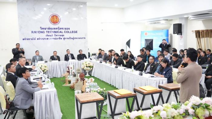 เมื่อวันที่ 27 ตุลาคม 2568 ผศ.พิเชษฐ์ จันทวี อธิการบดีมหาวิทยาลัยราชภัฏสงขลา (มรภ.สงขลา) เข้าร่วมการประชุมเพื่อสร้างเครือข่ายและพัฒนาหลักสูตรร่วมในการผลิตบัณฑิตที่มีสมรรถนะสูงสำหรับอุตสาหกรรมเป้าหมายแห่งอนาคต (New S-Curve) ณ ห้องประชุมสัมมนาอาชีวศึกษา ชั้น 3 อาคารอำนวยการ วิทยาลัยเทคนิคระยอง โดยมี นายกิตติพงค์ อุตตมะเวทิน ผู้อำนวยการวิทยาลัยเทคนิคระยอง ให้การต้อนรับ เป้าหมายเพื่อพัฒนาความร่วมมือระหว่างสถาบันการศึกษากับภาคเอกชนใน จ.ระยอง ในการร่วมกันพัฒนาหลักสูตรและบ่มเพาะกำลังคนที่มีสมรรถนะสูงให้พร้อมเข้าสู่ตลาดแรงงานในอุตสาหกรรมเป้าหมายแห่งอนาคต การประชุมในครั้งนี้มีผู้บริหารจากมหาวิทยาลัยราชภัฏ 5 แห่งเข้าร่วมการประชุม ได้แก่ ผศ.พิเชษฐ์ จันทวี อธิการบดีมหาวิทยาลัยราชภัฏสงขลา ผศ.ไชยวัฒน์ ปราณี อธิการบดีมหาวิทยาลัยราชภัฏนครสวรรค์ รศ.ดร.ปวีณา ลี้ตระกูล รองอธิการบดีมหาวิทยาลัยราชภัฏเชียงราย ผศ.ดร.บุญสิทธิ์ ไชยชนะ รองอธิการบดีมหาวิทยาลัยราชภัฏยะลา รศ.ดร.สราวุฒิ บุญเกิดรัมย์ คณบดีคณะเทคโนโลยีอุตสาหกรรม มหาวิทยาลัยราชภัฏสกลนคร และ นายจักรพงษ์ ปัญญาพูนตระกูล ผู้อำนวยการกองการยกระดับคุณภาพการจัดการศึกษาระดับอุดมศึกษา กระทรวงการอุดมศึกษา วิทยาศาสตร์ วิจัยและนวัตกรรม และผู้แทนจากสถาบันอุดมศึกษา 5 แห่ง ถือเป็นแนวทางสำคัญในการยกระดับคุณภาพการจัดการศึกษาให้ตอบสนองต่อความต้องการของภาคอุตสาหกรรม และสอดคล้องกับการพัฒนาประเทศในยุคเศรษฐกิจใหม่ โอกาสเดียวกันนี้ มีการลงนามความร่วมมือระหว่างมหาวิทยาลัยราชภัฏนครสวรรค์และวิทยาลัยเทคนิคระยอง เพื่อหารือแนวทางการพัฒนาหลักสูตรร่วมในการผลิตบัณฑิตสมรรถนะสูงสำหรับอุตสาหกรรมเป้าหมายแห่งอนาคต โดยมีมหาวิทยาลัยราชภัฏอื่น ๆ เข้าร่วมด้วย นอกจากนั้น ยังมีกิจกรรมวิพากษ์หลักสูตรในสาขายานยนต์ไฟฟ้า ระบบราง วิศวกรรมคอมพิวเตอร์และปัญญาประดิษฐ์ ตลอดจนการบรรยายพิเศษในหัวข้อ สถานการณ์ตลาดยานยนต์ไฟฟ้าในประเทศไทย โดยวิทยากรผู้ทรงคุณวุฒิ