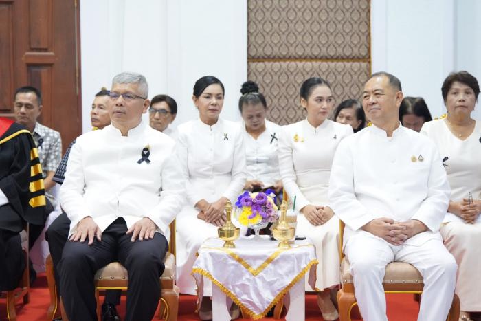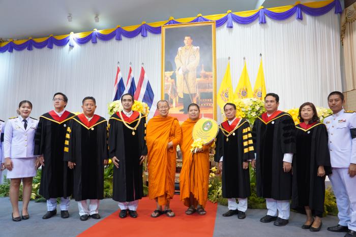 วันที่ 2 พฤศจิกายน 2568 กรมการศาสนา กระทรวงวัฒนธรรม จัดพิธีถวายผ้าพระกฐินและผ้าป่าพัฒนาวัดในจังหวัดชายแดนภาคใต้ จำนวนกว่า 300 วัด ณ หอประชุมเฉลิมพระเกียรติฯ มหาวิทยาลัยราชภัฏสงขลา มี นายชัยพล สุขเอี่ยม อธิบดีกรมการศาสนา กระทรวงวัฒนธรรม เป็นประธานในพิธี ในการนี้ รศ.ดร.ชูศักดิ์ เอกเพชร อุปนายกสภามหาวิทยาลัยราชสงขลา ได้อ่านคำประกาศเกียรติคุณและถวายปริญญาศิลปศาสตรดุษฎีบัณฑิตกิตติมศักดิ์แด่พระราชโพธิวิเทศวัชรมุนี วิ. ผศ.พิเชษฐ์ จันทวี อธิการบดีมหาวิทยาลัยราชภัฏสงขลา ถวายครุยวิทยฐานะ ผศ.ธนัย ตันวานิช รองอธิการบดีฝ่ายพัฒนานักศึกษา ถวายพัดรอง ผศ.ดร.รัชชพงษ์ ชัชวาลย์ คณบดีคณะมนุษยศาสตร์และสังคมศาสตร์ ถวายผ้าไตรจีวร 1 ไตร และอาจารย์ ดร.นฤภร ไชยสุขทักษิณ ประธานหลักสูตรศิลปศาสตรบัณฑิต สาขาวิชาสวัสดิการสังคม คณะมนุษยศาสตร์และสังคมศาสตร์ ถวายย่าม แด่พระราชโพธิวิเทศวัชรมุนี วิ.