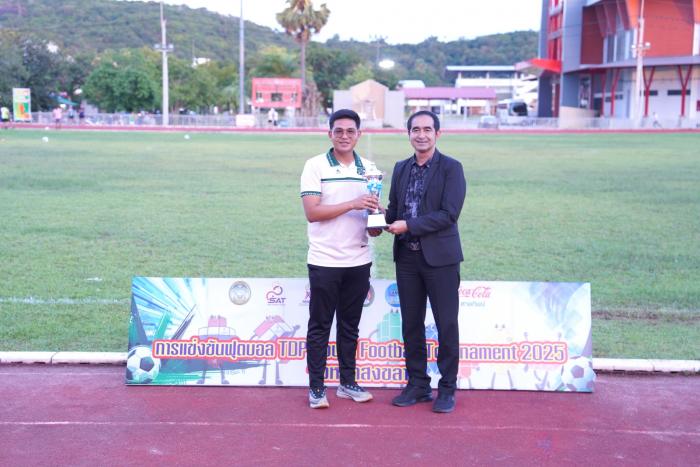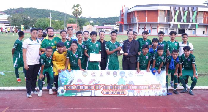 เมื่อวันที่ 31 ตุลาคม 2568 ผศ.พิเชษฐ์ จันทวี อธิการบดีมหาวิทยาลัยราชภัฏสงขลา (มรภ.สงขลา) พร้อมด้วย ผศ.ดร.กันตภณ มะหาหมัด รองอธิการบดีฝ่ายบริหารและพัฒนาหน่วยงาน มอบถ้วยรางวัลและประกาศนียบัตรให้แก่ทีมที่เข้าร่วมการแข่งขันฟุตบอล TDP Youth Football Tournament 2025 รอบคัดเลือกตัวแทนจังหวัดสงขลา รุ่นอายุไม่เกิน 17 ปี รอบชิงชนะเลิศ รุ่น U17 ณ สนามกีฬา มรภ.สงขลา พร้อมทั้งรับชมการแข่งขันระหว่างทีมโรงเรียนสมบูรณ์ศาสน์ กับทีมโรงเรียนนาทวีวิทยาคม ผลปรากฏว่าโรงเรียนสมบูรณ์ศาสน์ชนะเลิศไปด้วยสกอร์ 1 : 0 คว้าถ้วยรางวัลชนะเลิศไปครอง พร้อมทั้งเป็นตัวแทนของ จ.สงขลา เดินทางไปแข่งขันที่ จ.สุราษฎร์ธานี ในรอบคัดเลือกตัวแทนภาคใต้ต่อไป