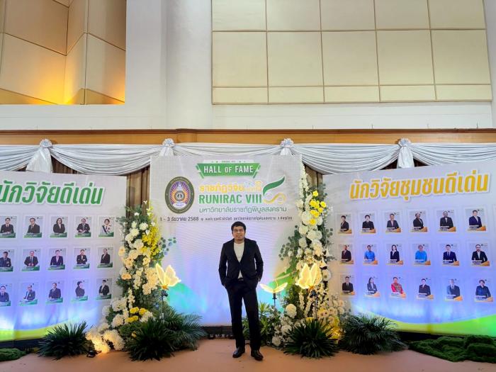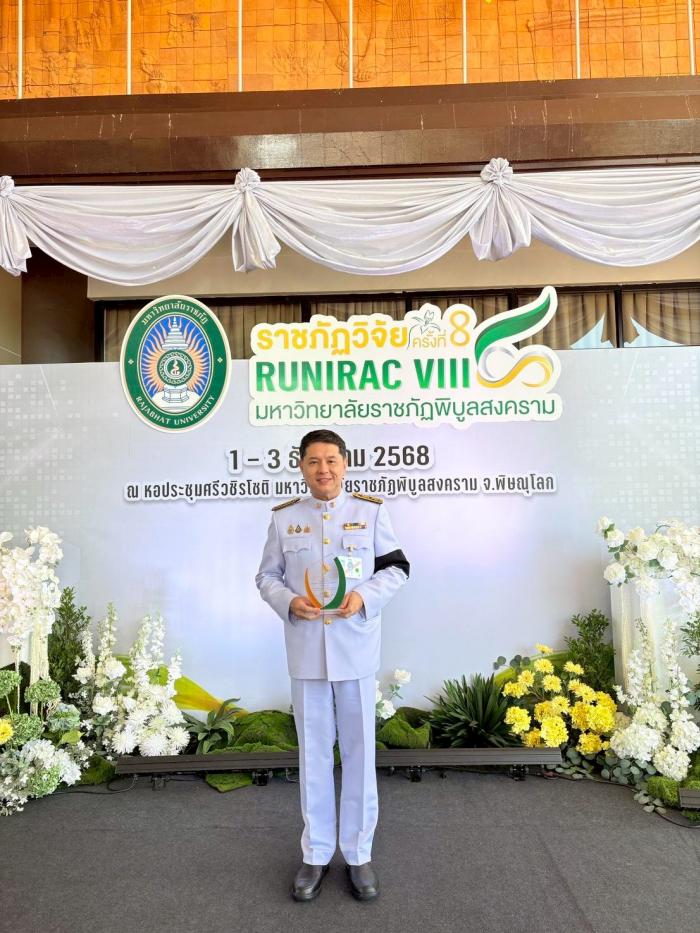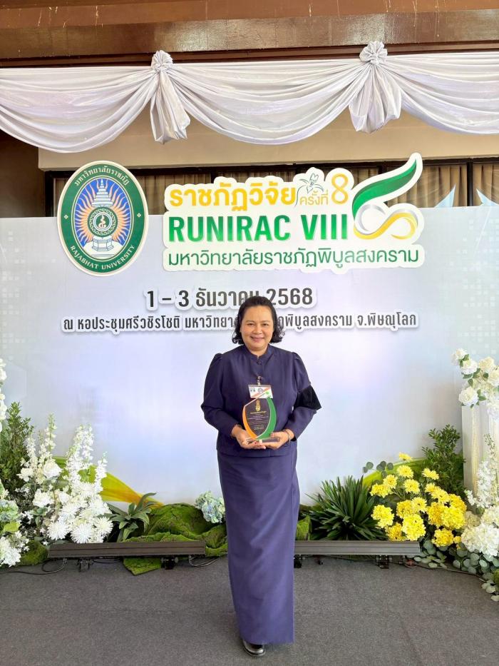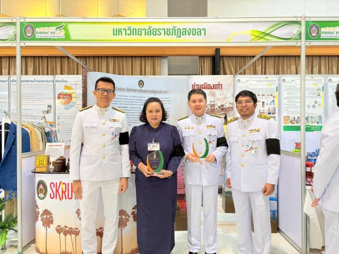 มรภ.สงขลา ร่วมจัดนิทรรศการในงานประชุมวิชาการระดับชาติและนานาชาติ ราชภัฏวิจัย ครั้งที่ 8 ณ มรภ.พิบูลสงคราม จ.พิษณุโลก สุดปลื้มคว้า 2 รางวัลสำคัญ ผศ.ดร.ศดานนท์ วัตตธรรม รองคณบดีคณะมนุษยศาสตร์ฯ รับรางวัลนักวิจัยดีเด่น น.ส.ชญานิศ คงสุวรรณ์ ประธานกลุ่มวิสาหกิจชุมชนโหนดศิลปบ้านทองลัง รับรางวัลนักวิจัยชุมชนดีเด่น เมื่อวันที่ 1 ธันวาคม 2568 พระบาทสมเด็จพระเจ้าอยู่หัว ทรงพระกรุณาโปรดเกล้าโปรดกระหม่อม ให้ พันเอก หม่อมเจ้า นวพรรษ์ ยุคล เสด็จแทนพระองค์ไปทรงเปิดการประชุมวิชาการระดับชาติและนานาชาติ ราชภัฏวิจัย ครั้งที่ 8 ซึ่งจัดขึ้นในระหว่างวันที่ 1-3 ธันวาคม 2568 ณ หอประชุมศรีวชิรโชติ มหาวิทยาลัยราชภัฏพิบูลสงคราม (มรภ.พิบูลสงคราม) จังหวัดพิษณุโลก ภายใต้แนวคิด วิจัยและนวัตกรรมเพื่อพัฒนาท้องถิ่นสู่สากล และการขับเคลื่อนเป้าหมายการพัฒนาที่ยั่งยืน (SDGs) จัดโดยที่ประชุมอธิการบดีมหาวิทยาลัยราชภัฏ และมหาวิทยาลัยราชภัฏทั้ง 38 แห่ง ในการนี้ ผศ.พิเชษฐ์ จันทวี อธิการบดีมหาวิทยาลัยราชภัฏสงขลา (มรภ.สงขลา) ได้มอบหมายให้ รศ.ดร.วีระชัย แสงฉาย รองอธิการบดีฝ่ายวิชาการและวิจัย พร้อมด้วย ผศ.อภิชาติ พันชูกลาง รองผู้อำนวยการสถาบันวิจัยและพัฒนา ฝ่ายวิจัยและยุทธศาสตร์สถาบัน และบุคลากรสถาบันวิจัยและพัฒนา เป็นตัวแทนเข้าร่วมจัดนิทรรศการในงานประชุมวิชาการระดับชาติและนานาชาติ ราชภัฏวิจัย ครั้งที่ 8 เป้าหมายเพื่อแลกเปลี่ยนองค์ความรู้ นวัตกรรม และผลงานวิจัยที่มีคุณค่าต่อสังคมและชุมชน ซึ่ง มรภ.สงขลา ได้นำเสนอผลงานวิจัยและนวัตกรรมเด่นที่สะท้อนความมุ่งมั่นของมหาวิทยาลัยในการขับเคลื่อนงานวิจัยเพื่อการพัฒนาท้องถิ่นอย่างยั่งยืน ทั้งนี้ ในงานดังกล่าว มรภ.สงขลา ได้รับเกียรติในการเข้ารับรางวัลสำคัญ 2 รางวัล ได้แก่ ผศ.ดร.ศดานนท์ วัตตธรรม รองคณบดีคณะมนุษยศาสตร์และสังคมศาสตร์ (หัวหน้าโครงการวิจัย) ได้รับรางวัล นักวิจัยดีเด่น จากผลงานวิจัยเรื่อง การเพิ่มศักยภาพการบริหารการจัดเก็บรายได้ท้องถิ่นเพื่อการพึ่งพาตนเองทางการคลังขององค์กรปกครองส่วนท้องถิ่นในจังหวัดสงขลาอย่างยั่งยืน ซึ่งเป็นผลงานวิจัยที่มีคุณภาพและสร้างผลกระทบเชิงบวกต่อสังคมอย่างต่อเนื่อง ขณะที่ นางสาวชญานิศ คงสุวรรณ์ ประธานกลุ่มวิสาหกิจชุมชนโหนดศิลปบ้านทองลัง ตำบลท่าหิน อำเภอสิงหนคร จังหวัดสงขลา ได้รับรางวัล นักวิจัยชุมชนดีเด่น จากผลงานวิจัยเรื่อง การออกแบบสร้างสรรค์เฟอร์นิเจอร์บริเวณพื้นที่คาบสมุทรสทิงพระ โดยมีแรงบันดาลใจจากวิถีชีวิต ภูมิปัญญาและหลักฐานทางประวั
