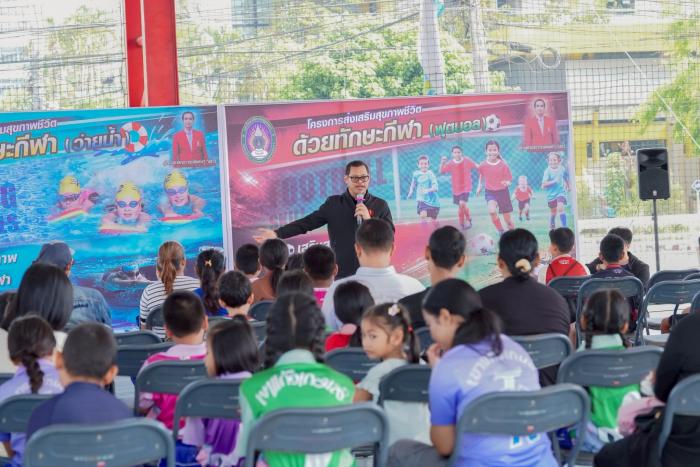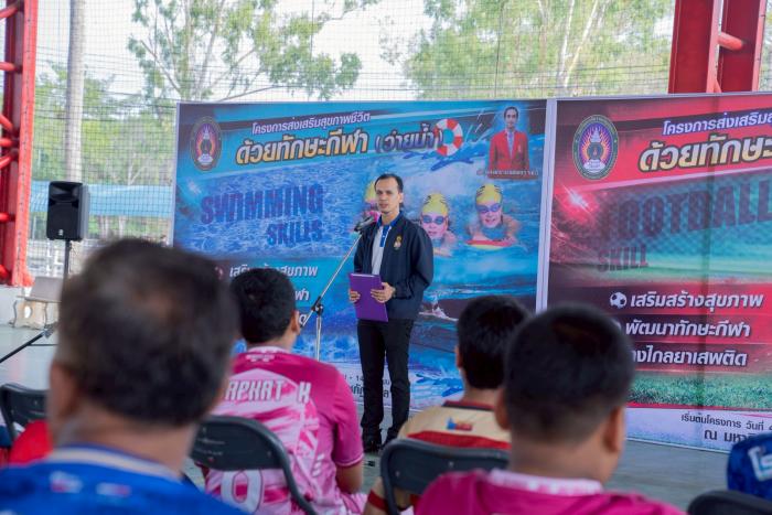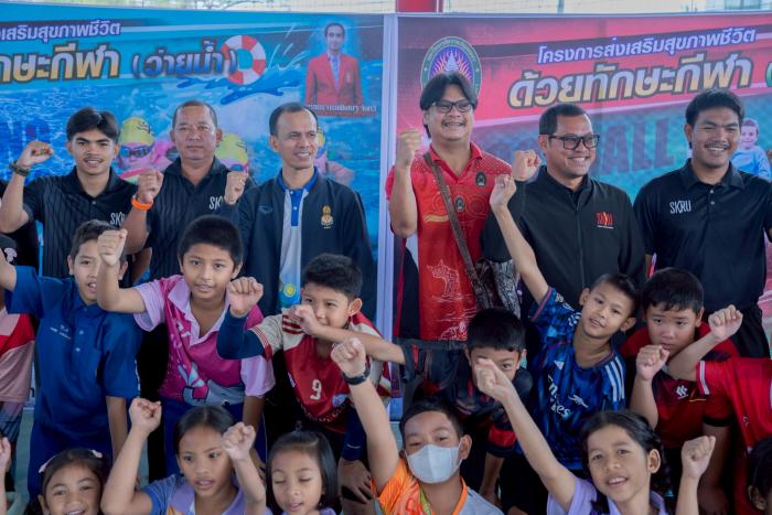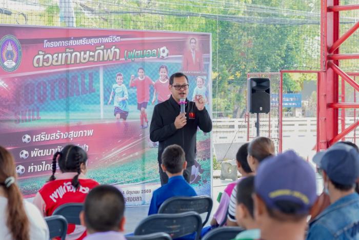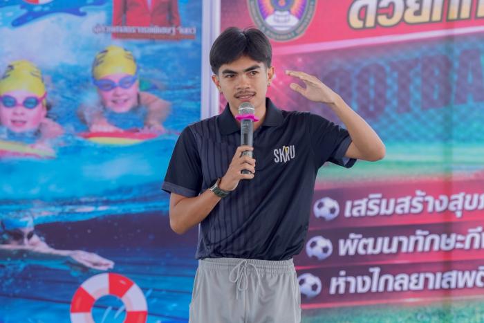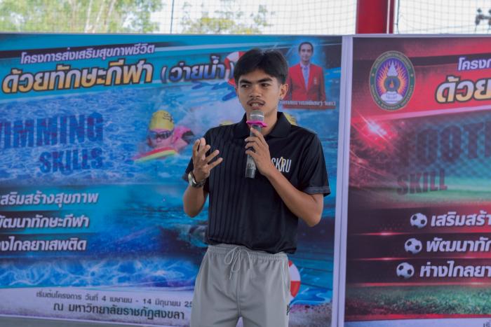 มรภ.สงขลา จัดอบรมเสริมทักษะชีวิตด้วยกิจกรรมกีฬา "ว่ายน้ำ-ฟุตบอล" พัฒนาศักยภาพทางร่างกาย จิตใจ และสังคม ฝึกการทำงานเป็นทีม (4 เมษายน 2569) ผศ.พิเชษฐ์ จันทวี อธิการบดีมหาวิทยาลัยราชภัฏสงขลา (มรภ.สงขลา) มอบหมายให้ ผศ.ดร.กันตภณ มะหาหมัด รองอธิการบดีฝ่ายบริหารและพัฒนาหน่วยงาน เป็นประธานในพิธีเปิดโครงการอบรมเชิงปฏิบัติการ เรื่อง เสริมทักษะชีวิตด้วยกิจกรรมกีฬา ณ สนามกีฬาในร่ม มรภ.สงขลา (โดมแดง) กล่าวรายงานโดย ผศ.พลากร นัคราบัณฑิต ผู้ช่วยอธิการบดี การจัดโครงการในครั้งนี้ ประกอบด้วยกิจกรรมกีฬาจำนวน 2 ประเภท ได้แก่ ทักษะกีฬาว่ายน้ำ และทักษะกีฬาฟุตบอล ซึ่งเป็นกิจกรรมที่ช่วยพัฒนาทั้งด้านร่างกาย อารมณ์ และสังคม โดยเปิดโอกาสให้ผู้เข้าร่วมได้ฝึกทักษะพื้นฐาน ฝึกความอดทน มีวินัย และเรียนรู้การอยู่ร่วมกับผู้อื่นอย่างมีความสุข ผศ.ดร.กันตภณ มะหาหมัด กล่าวว่า โครงการนี้ถือเป็นกิจกรรมที่มีความสำคัญอย่างยิ่งในการส่งเสริมและพัฒนาศักยภาพของผู้เข้าร่วมทุกคนให้มีความพร้อมทั้งด้านร่างกาย จิตใจ และสังคม กีฬานอกจากจะช่วยเสริมสร้างสุขภาพให้แข็งแรงแล้ว ยังเป็นเครื่องมือที่ช่วยหล่อหลอมทักษะชีวิตที่จำเป็น ไม่ว่าจะเป็นความมีระเบียบวินัย ความรับผิดชอบ การทำงานเป็นทีม การรู้จักการแพ้ การชนะ และการให้อภัย ซึ่งล้วนเป็นพื้นฐานสำคัญในการดำเนินชีวิตในสังคมอย่างมีคุณภาพ ด้าน ผศ.พลากร นัคราบัณฑิต กล่าวว่า การจัดโครงการเสริมทักษะชีวิตด้วยกิจกรรมกีฬา มีวัตถุประสงค์เพื่อส่งเสริมให้ผู้เข้าร่วมโครงการได้พัฒนาทักษะชีวิตในด้านต่าง ๆ อาทิ การมีระเบียบวินัย ความรับผิดชอบ การทำงานเป็นทีม การรู้จักแพ้ รู้จักชนะ และการมีน้ำใจนักกีฬา รวมถึงการเสริมสร้างสุขภาพร่างกายให้แข็งแรง และการใช้เวลาว่างให้เกิดประโยชน์ โดยคาดหวังให้ผู้เข้าร่วมโครงการนำความรู้ ประสบการณ์ และแรงบันดาลใจที่ได้รับ ไปใช้ในการพัฒนาตนเองและประยุกต์ใช้ในชีวิตประจำวันได้อย่างเหมาะสมต่อไป