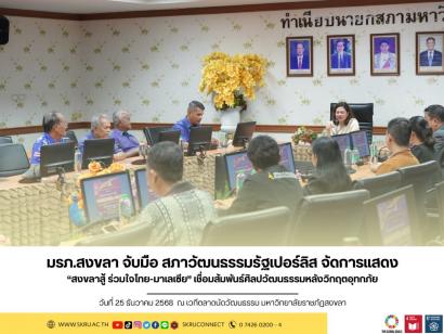 คณะศิลปกรรมฯ มรภ.สงขลา จับมือ รร.สายบุรี (แจ้งประชาคาร) ยกทีมเยือนมาเลเซีย นำการแสดงทางวัฒนธรรมร่วมงานเลี้ยงรับรองเนื่องในวันชาติ และวันคล้ายวันเฉลิมพระชนมพรรษาในหลวง ร.9 เมื่อวันที่ 4 ธันวาคม 2568...
