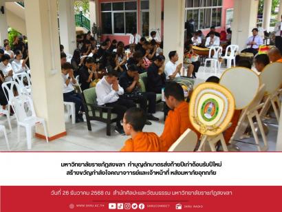 มหาวิทยาลัยราชภัฏสงขลา ทำบุญตักบาตรส่งท้ายปีเก่าต้อนรับปีใหม่ สร้างขวัญกำลังใจ หลังมหาภัยอุทกภัย วันที่ 26 ธันวาคม 2568 ผศ.พิเชษฐ์ จันทวี อธิการบดีมหาวิทยาลัยราชภัฏสงขลา (มรภ.สงขลา) เป็นป...