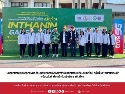 มรภ.สงขลา ร่วมพิธีเปิดการแข่งขันกีฬามหาวิทยาลัยแห่งประเทศไทย ครั้งที่ 51 ?อินทนิลเกมส์? พร้อมส่งทัพนักกีฬาเข้าร่วมชิงชัย 11 ชนิดกีฬา เมื่อวันที่ 9 มกราคม 2569 มหาวิทยาลัยราชภัฏสงขลา นำโดย ผศ.พิเชษฐ...