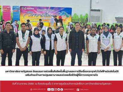 กองพัฒนานักศึกษา มรภ.สงขลา จัดอบรมการช่วยฟื้นคืนชีพขั้นพื้นฐานและการใช้เครื่องกระตุกหัวใจไฟฟ้าชนิดอัตโนมัติ เสริมทักษะด้านการปฐมพยาบาลและช่วยเหลือชีวิตผู้ที่มีภาวะหยุดหายใจ เมื่อวันที่ 8 ...