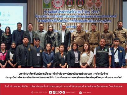 "มศว" ผนึกกำลัง มรภ.สงขลา-ภาคีเครือข่าย ประชุมจัดทำข้อเสนอเชิงนโยบายโครงการวิจัย ?ประเมินผลกระทบพฤติกรรมเสี่ยงต่ออุบัติเหตุรถจักรยานยนต์ฯ? วิเคราะห์พฤติกรรมเสี่ยง หาทางออกลดความสูญเสียวัยรุ่นอายุ 15-2...
