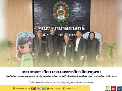 อธิการบดี มรภ.สงขลา เดินหน้าสร้างเครือข่ายความร่วมมือทางวิชาการ เดินทางเยือน มรภ.นครราชสีมา ศึกษาดูงานโมเดลความสำเร็จการบริหารจัดการคณะพยาบาลศาสตร์ ปูทางสู่การจัดตั้งคณะพยาบาลศาสตร์ มรภ.สงขลา พร้อมแลก...